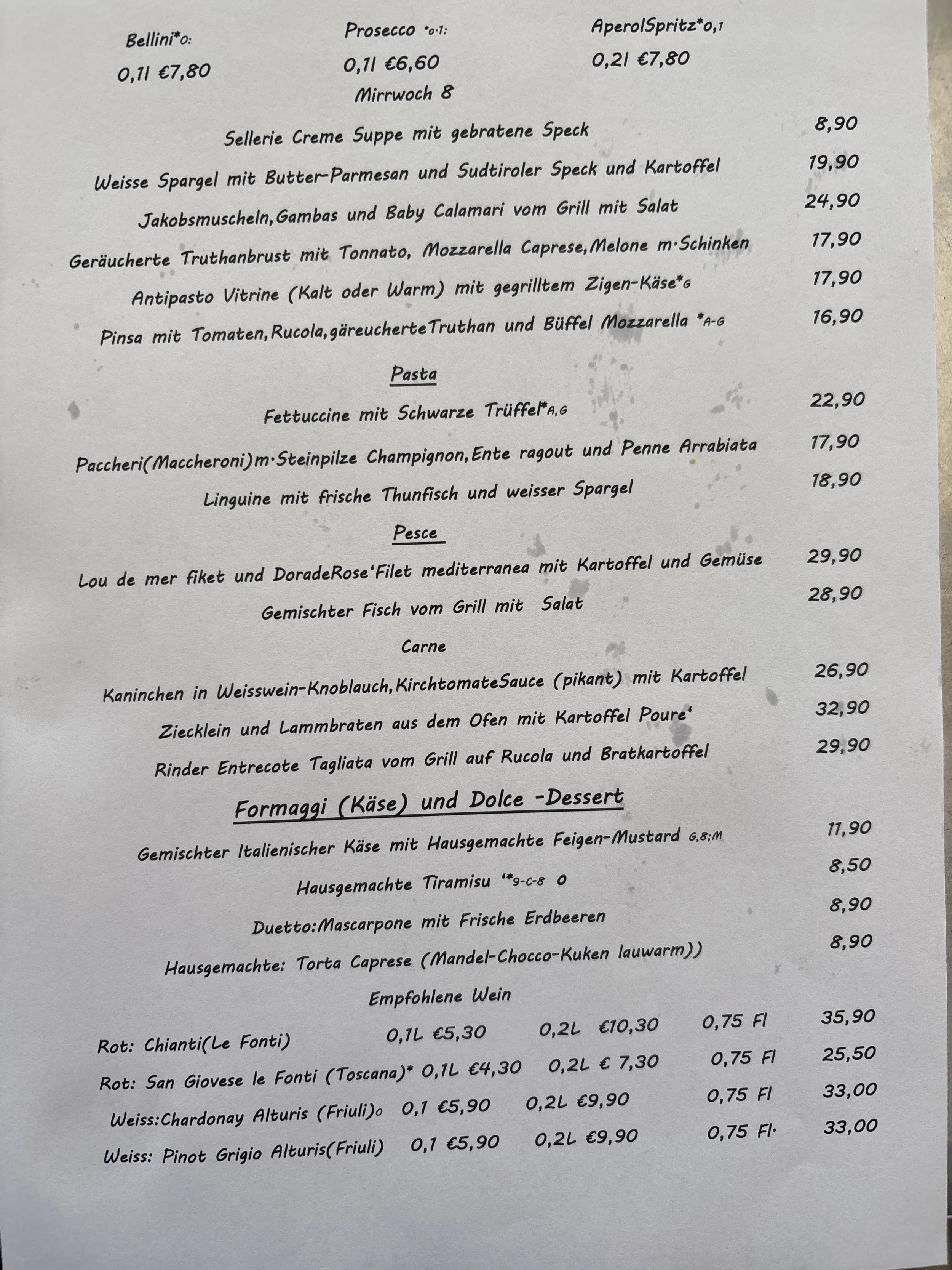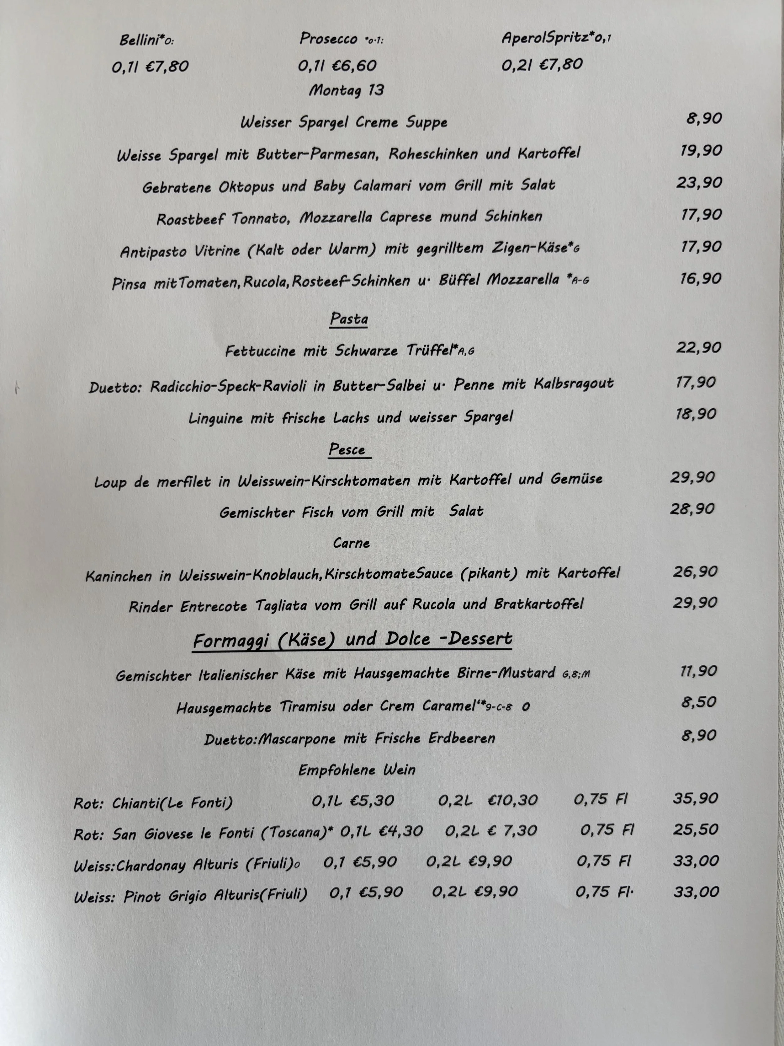 Jeden Freitag- und Samstagabend empfehlen unsere beiden Küchenchefs Giovanni und Massimo aus Ischia und Triest zusätzlich zur normalen Speisekarte eine Auswahl an erlesenen Fischgerichten.
