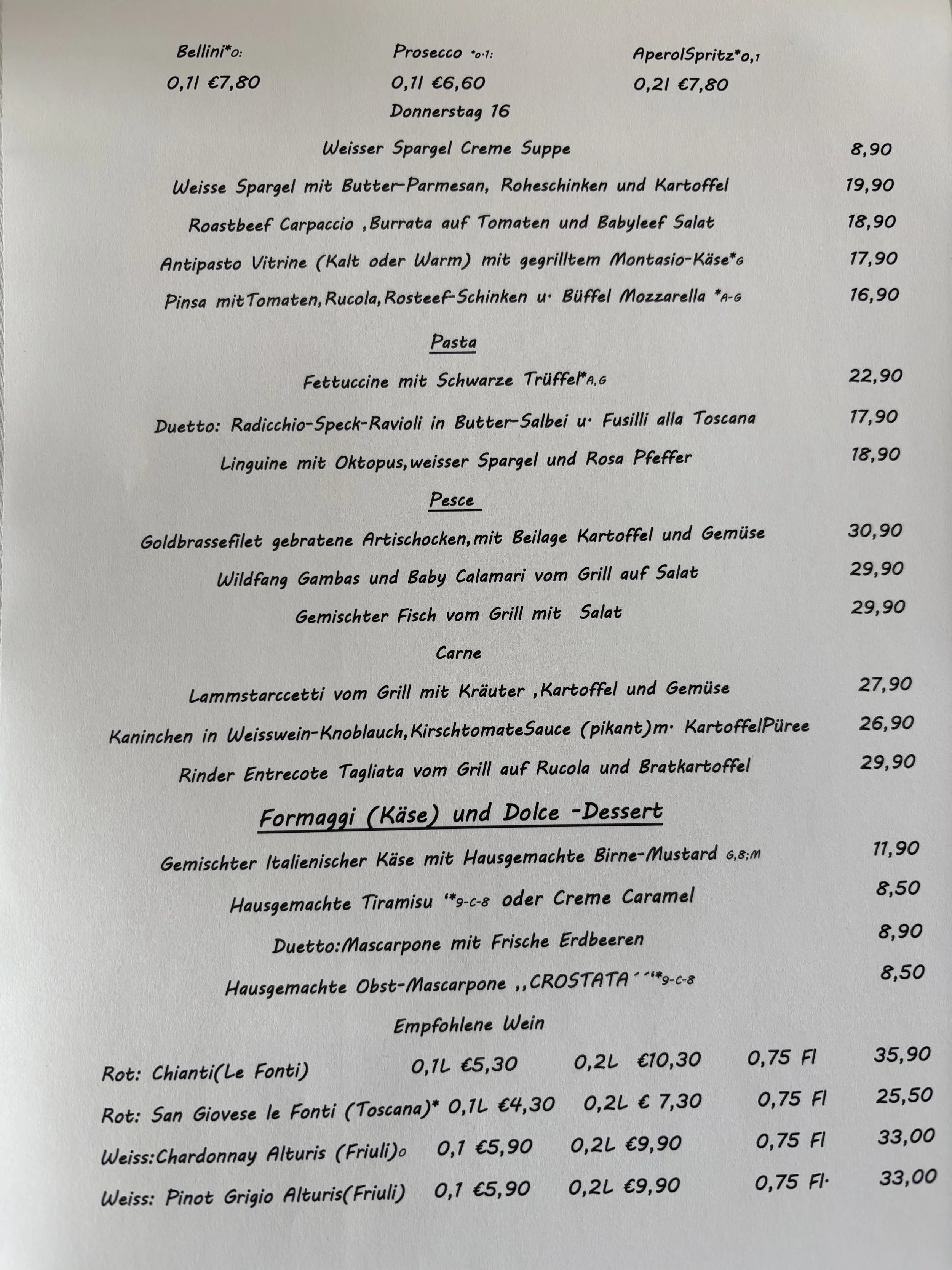 Jeden Freitag- und Samstagabend empfehlen unsere beiden Küchenchefs Giovanni und Massimo aus Ischia und Triest zusätzlich zur normalen Speisekarte eine Auswahl an erlesenen Fischgerichten.