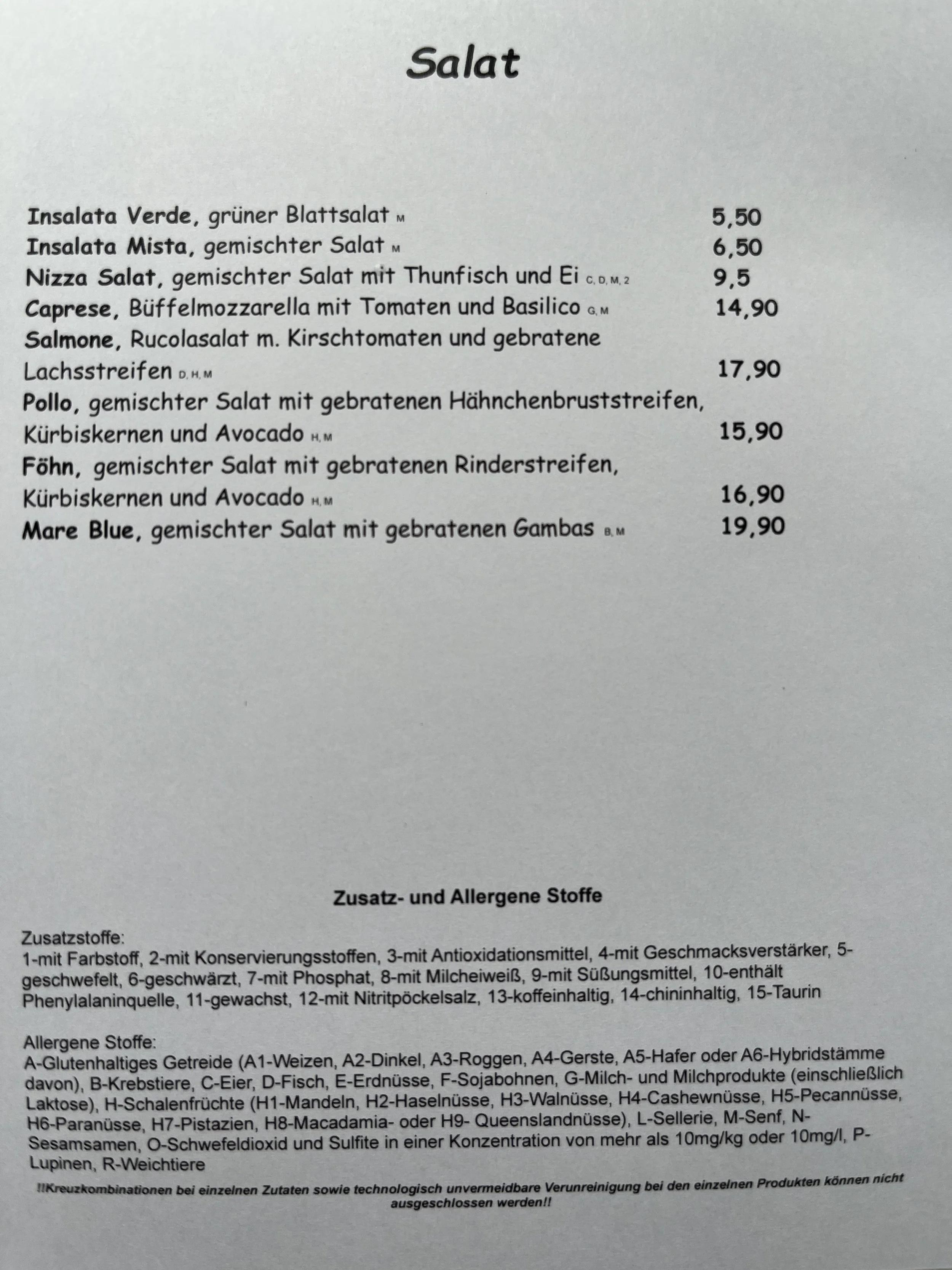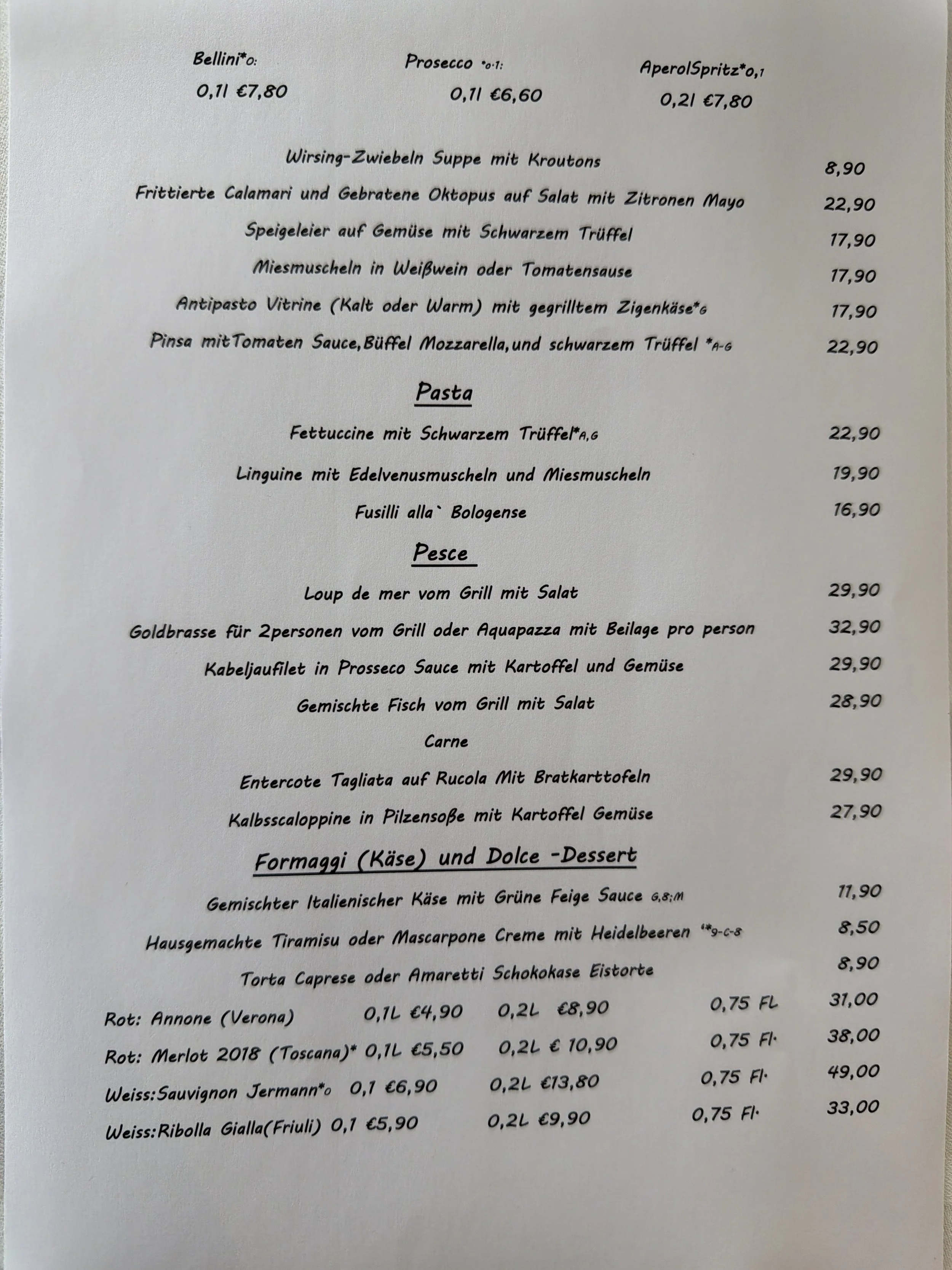 Jeden Freitag- und Samstagabend empfehlen unsere beiden Küchenchefs Giovanni und Massimo aus Ischia und Triest zusätzlich zur normalen Speisekarte eine Auswahl an erlesenen Fischgerichten.